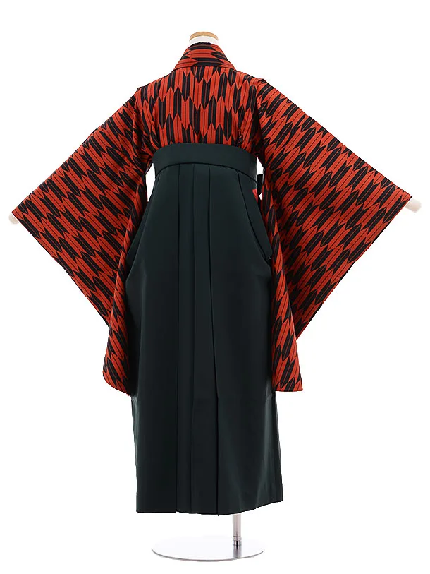 小学校卒業式袴レンタル(女の子)9697赤黒矢柄×グリーン袴