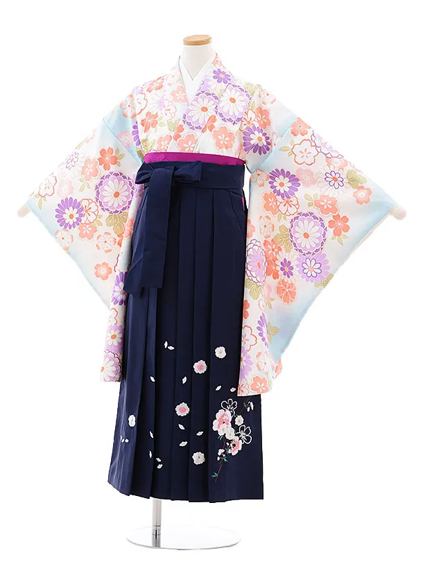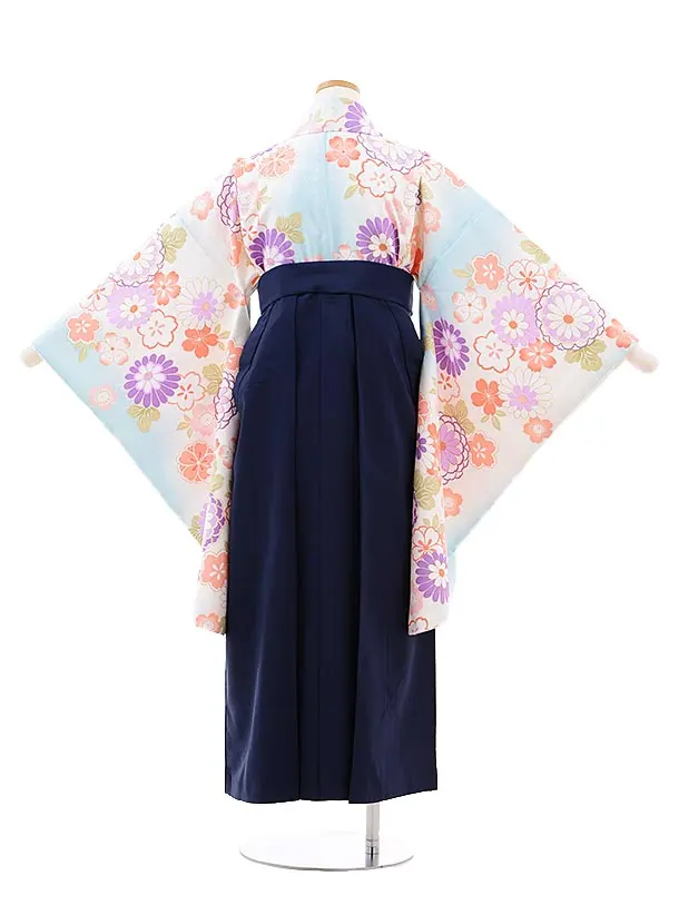 小学校卒業式袴レンタル(女の子)9725 水色菊桜×紺袴