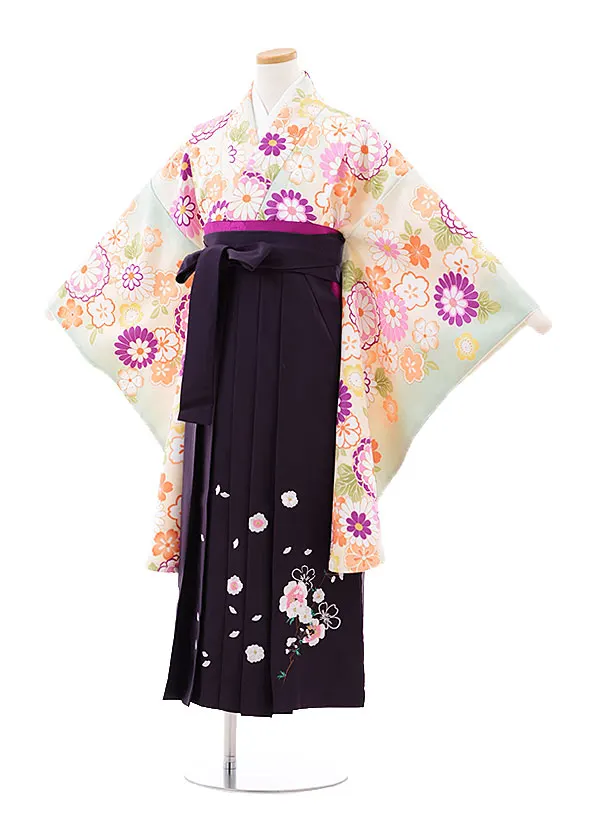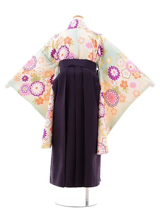 小学校卒業式袴レンタル(女の子)9729 黄緑菊桜×パープル袴