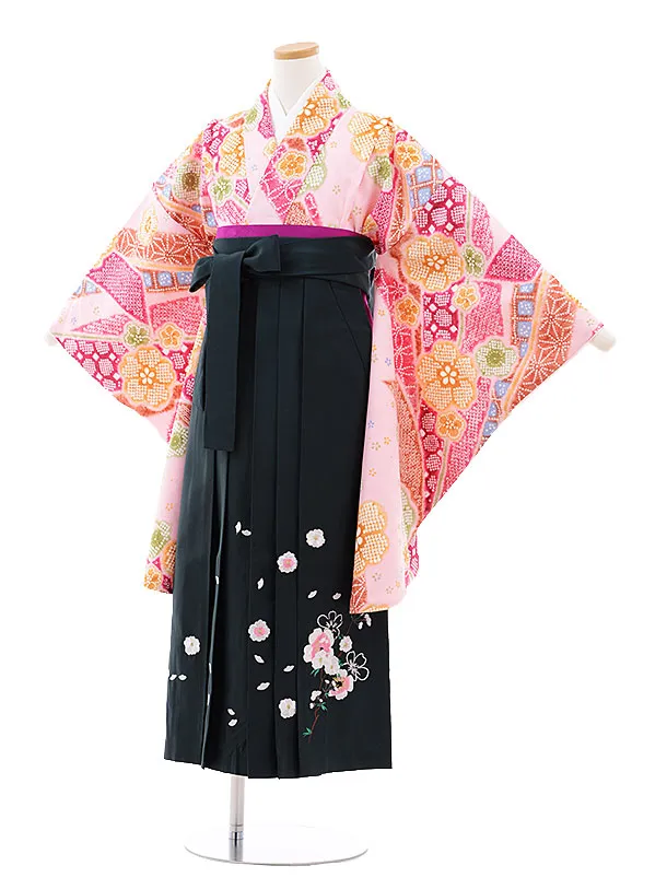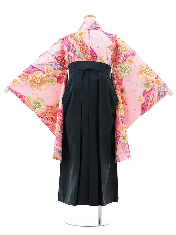 小学校卒業式袴レンタル(女の子)9730 ピンクのしめ鹿の子×深緑袴