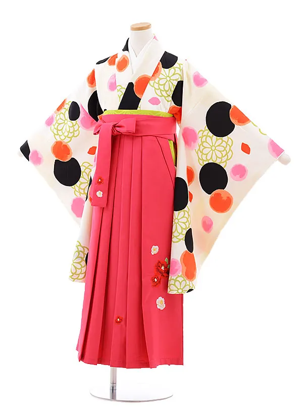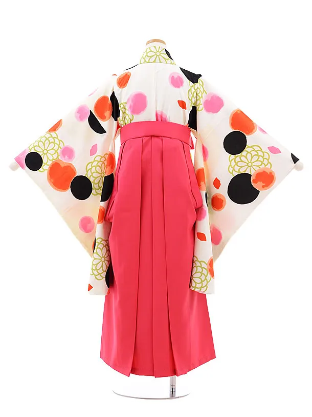 小学校卒業式袴レンタル(女の子)9735 白地水玉菊×ピンク袴