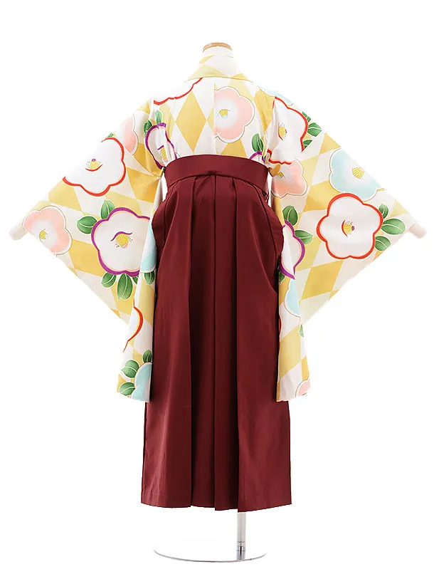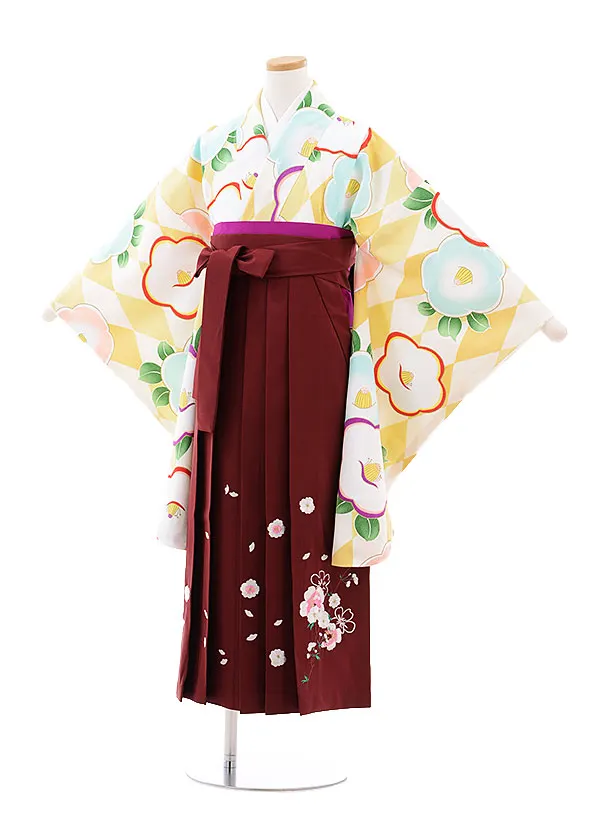 小学校卒業式袴レンタル(女の子)9741 白ベージュ椿×エンジ袴