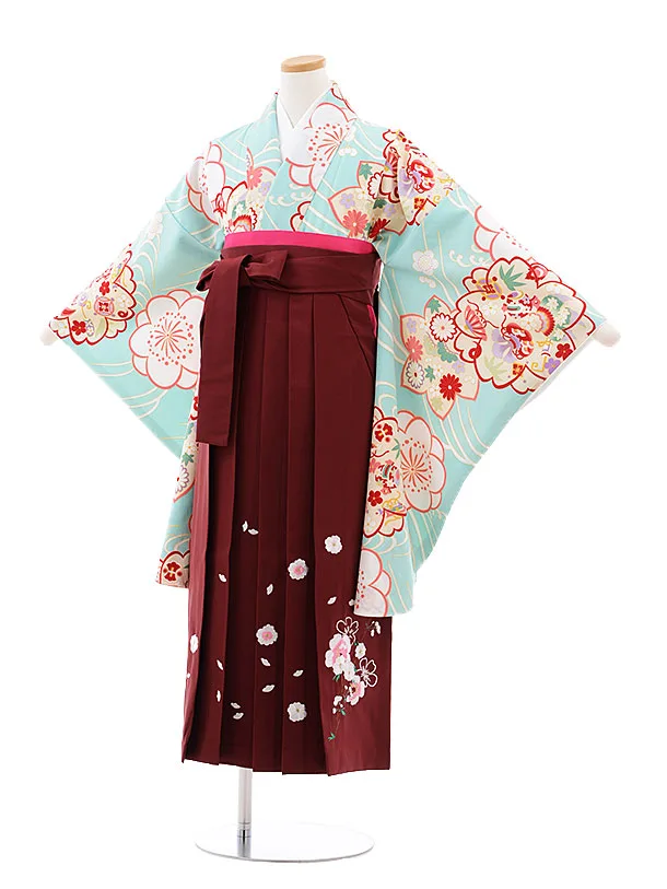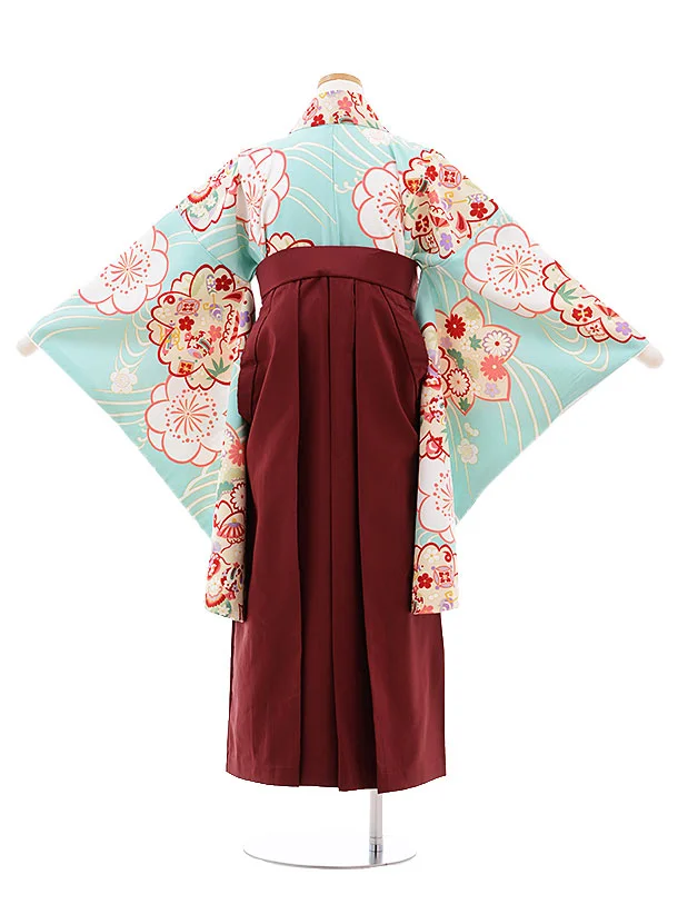 小学校卒業式袴レンタル(女の子)9742 水色寿梅桜×エンジ袴