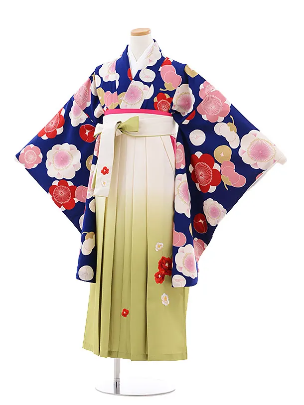 小学校卒業式袴レンタル(女の子)9748 紺地梅×クリームぼかし袴