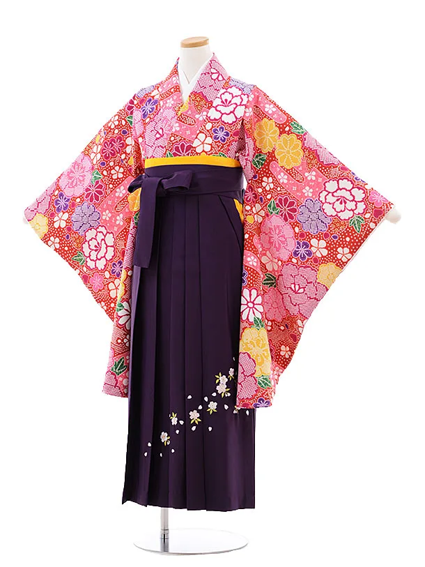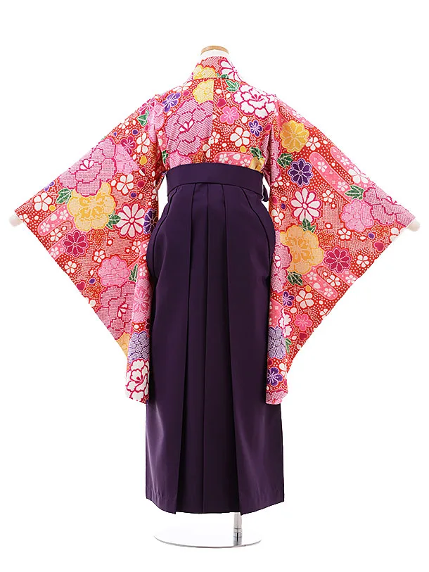 小学校卒業式袴レンタル(女の子)9752 赤地鹿の子花×パープル袴