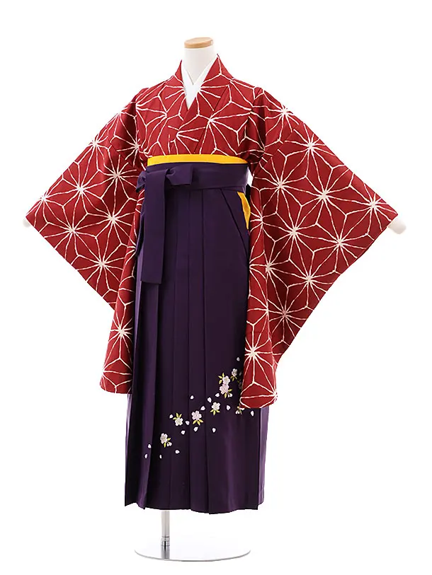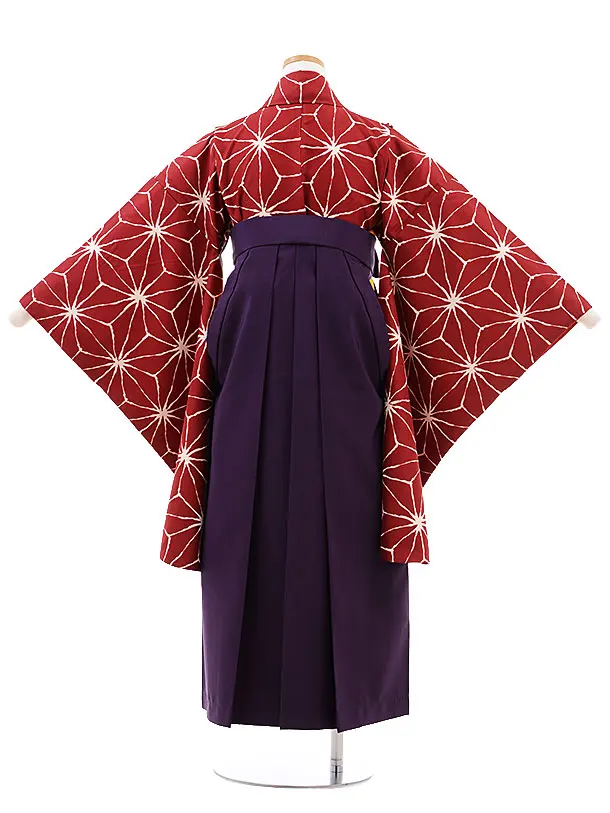 小学校卒業式袴レンタル(女の子)9754 エンジ麻の葉×パープル袴