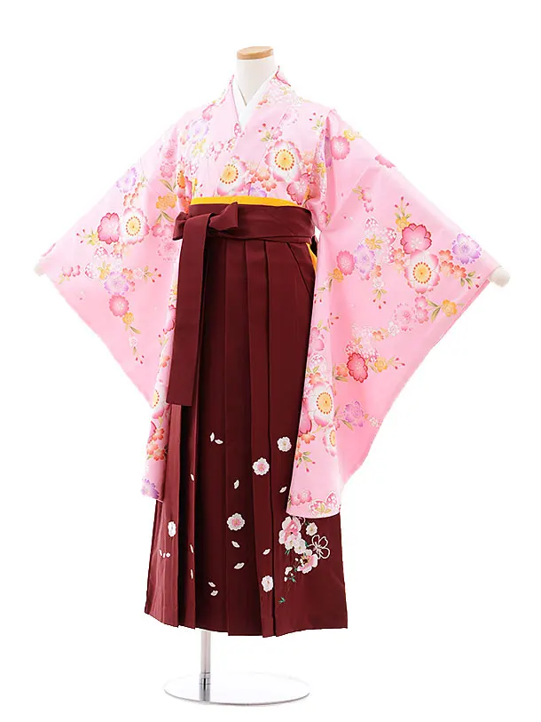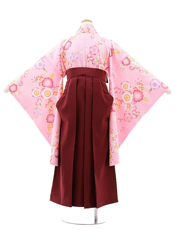 小学校卒業式袴レンタル(女の子)9764 ピンク桜×エンジ袴