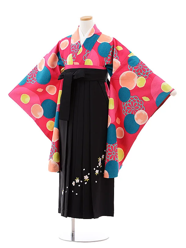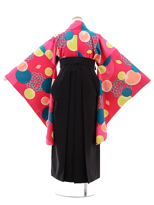 小学校卒業式袴レンタル(女の子)9779 ピンク地水玉×黒袴