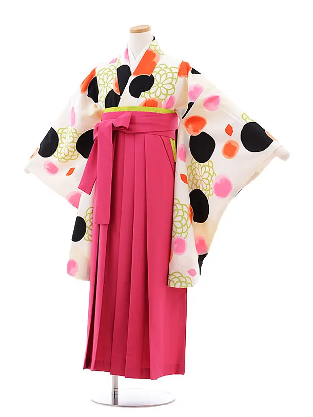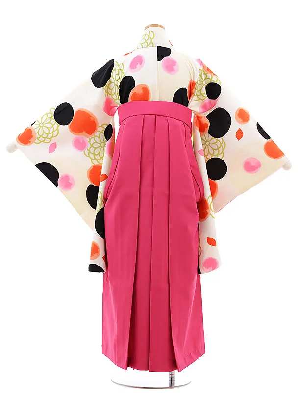 小学校卒業式袴レンタル(女の子)9781 クリーム地水玉×ピンク袴