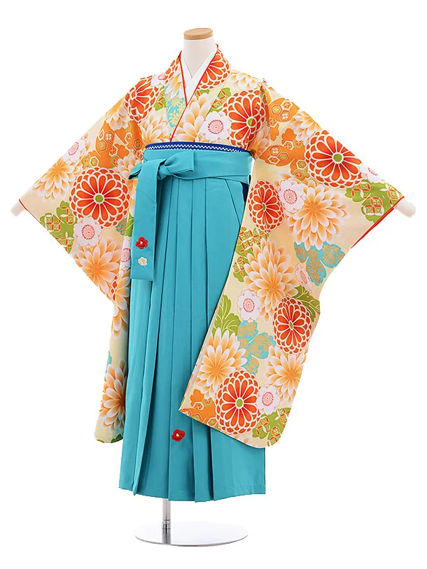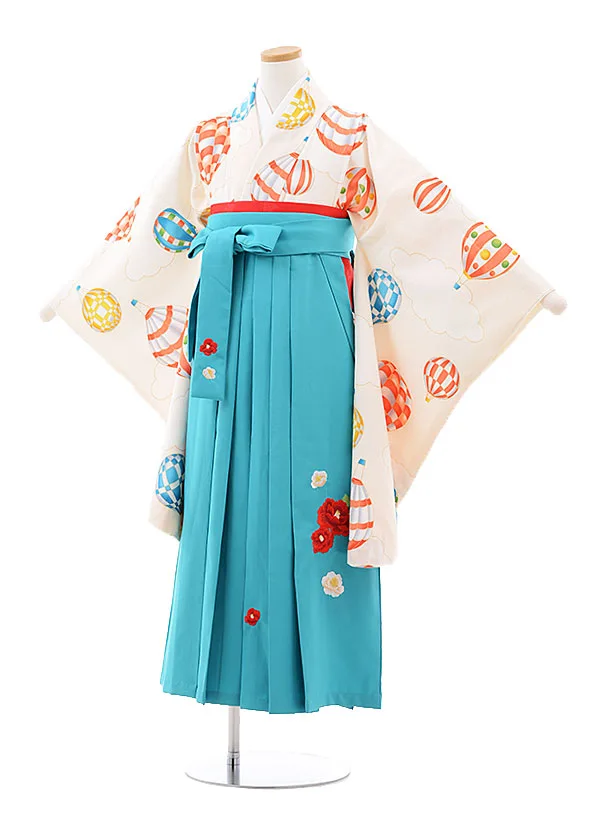 小学校卒業式袴レンタル(女の子)9782 クリーム地バルーン×ターコイズ袴