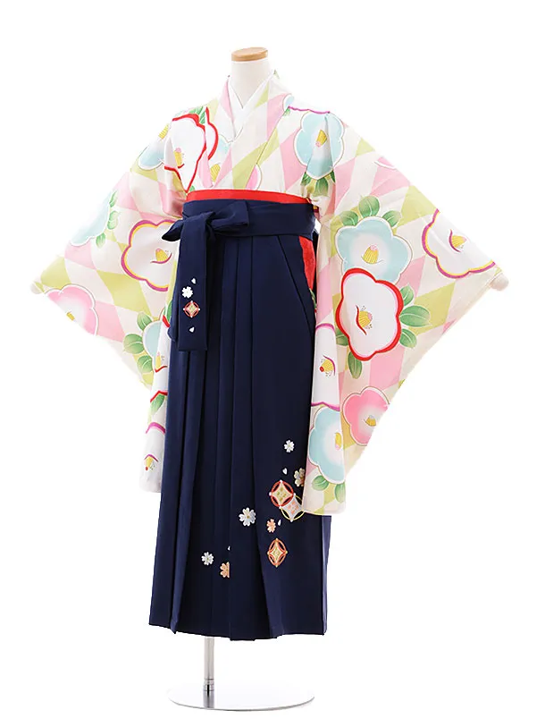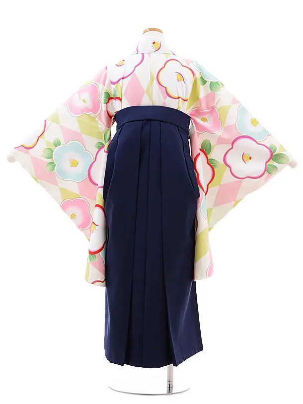 小学校卒業式袴レンタル(女の子)9785 白ピンク椿×紺袴