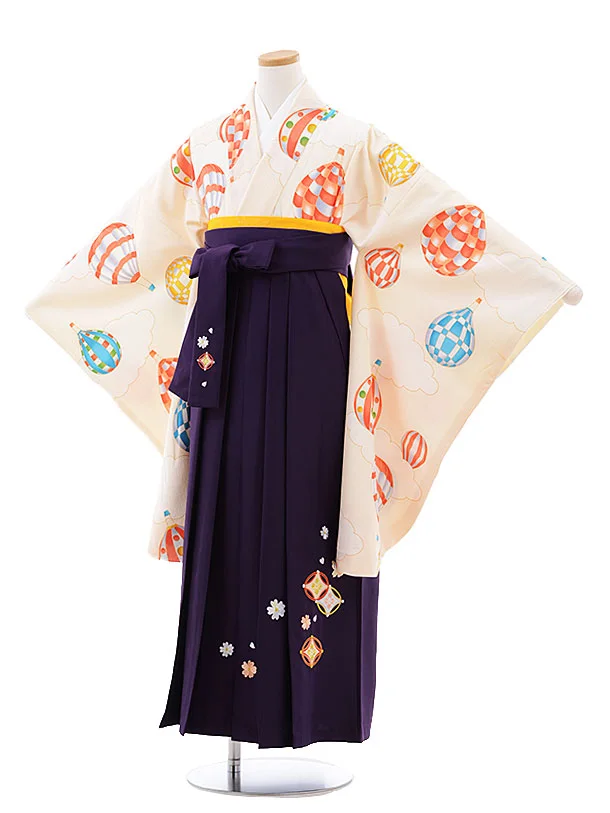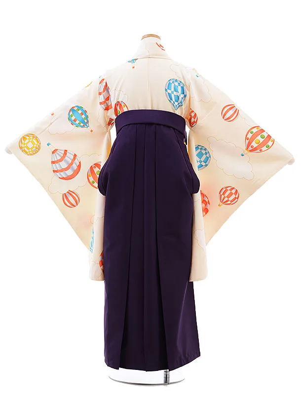 小学校卒業式袴レンタル(女の子)9786 クリーム地バルーン×パープル袴