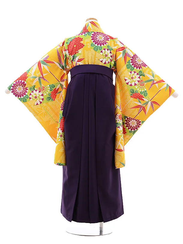 小学校卒業式袴レンタル(女の子)9789 黄色地古典×パープル袴