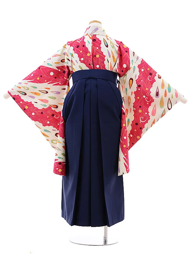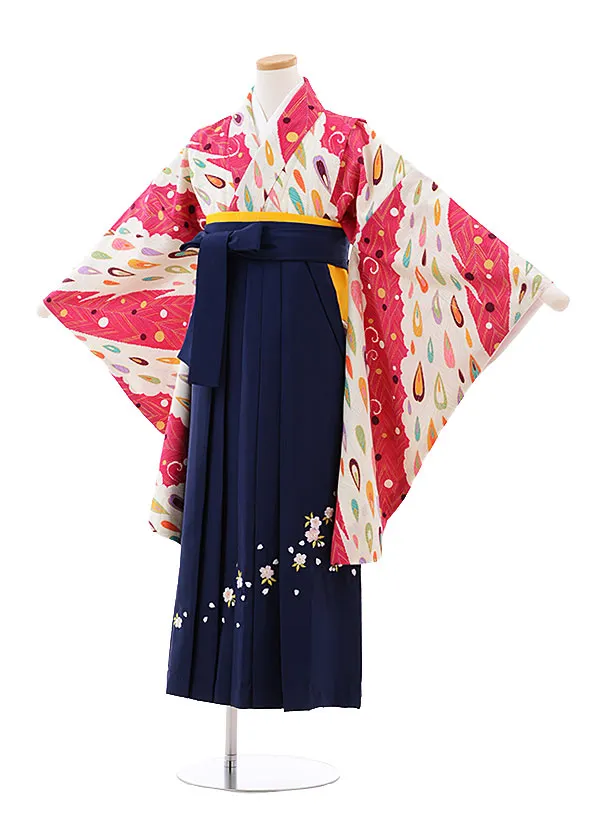 小学校卒業式袴レンタル(女の子)9797 クリーム地孔雀×紺袴