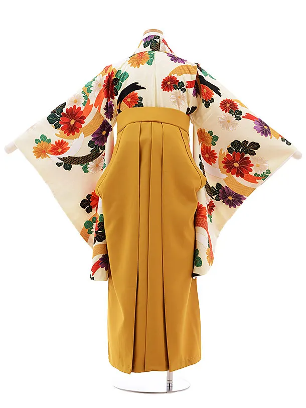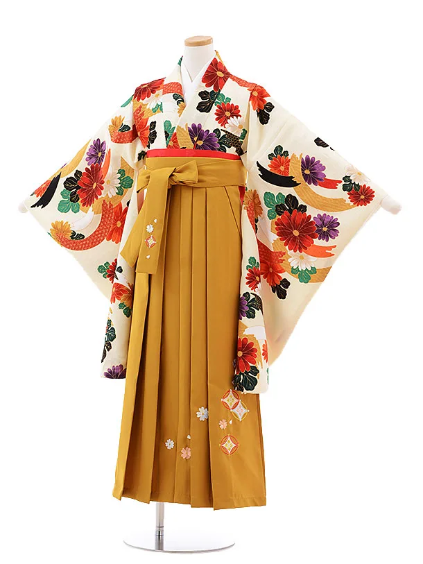 小学校卒業式袴レンタル(女の子)9801 クリーム地菊×金茶袴