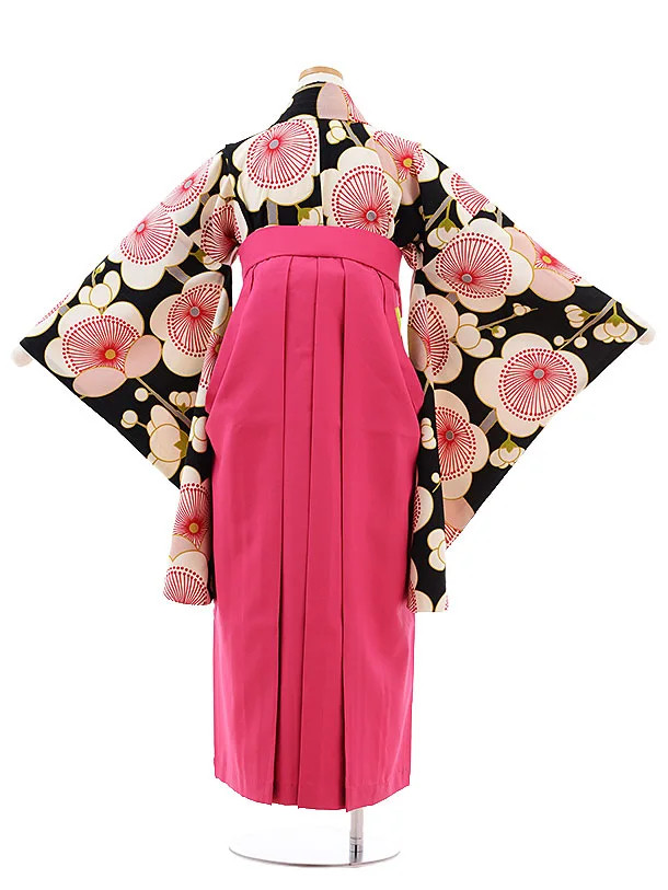 小学校卒業式袴レンタル(女の子)9803 黒地梅×ピンク袴