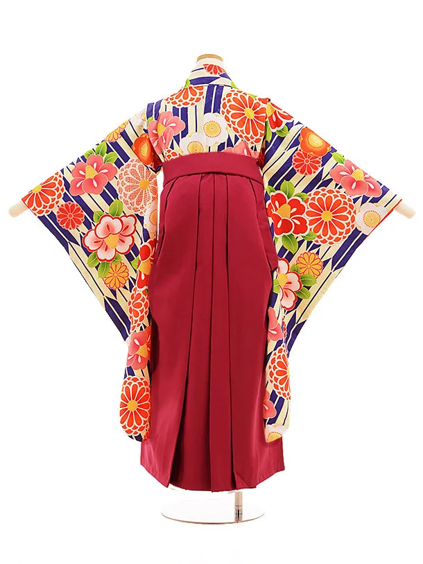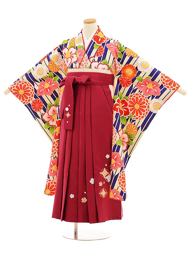 小学校卒業式袴レンタル(女の子)9824 小町kids 紺紫矢柄花×ローズ袴