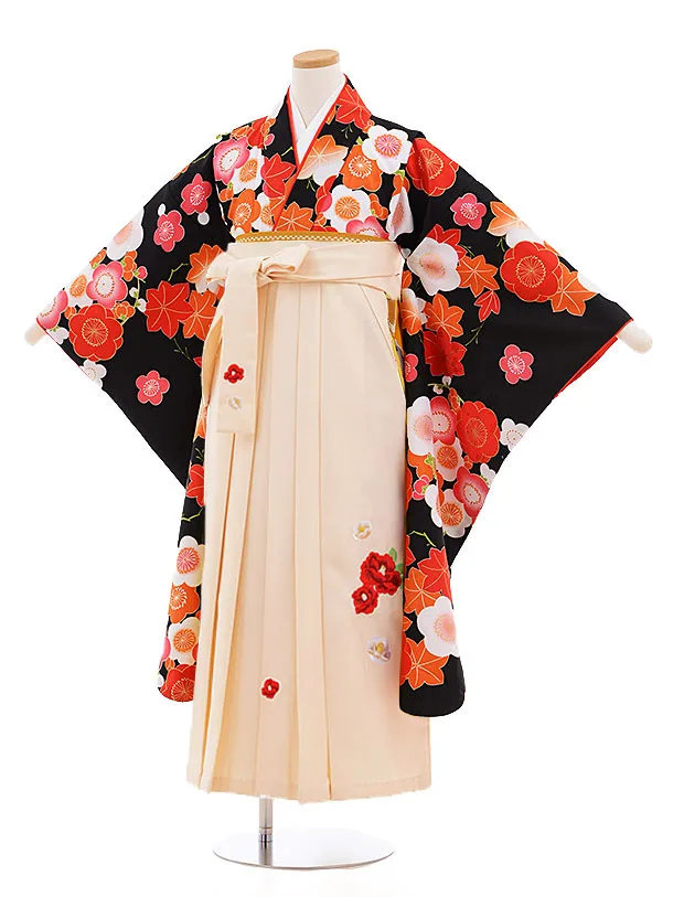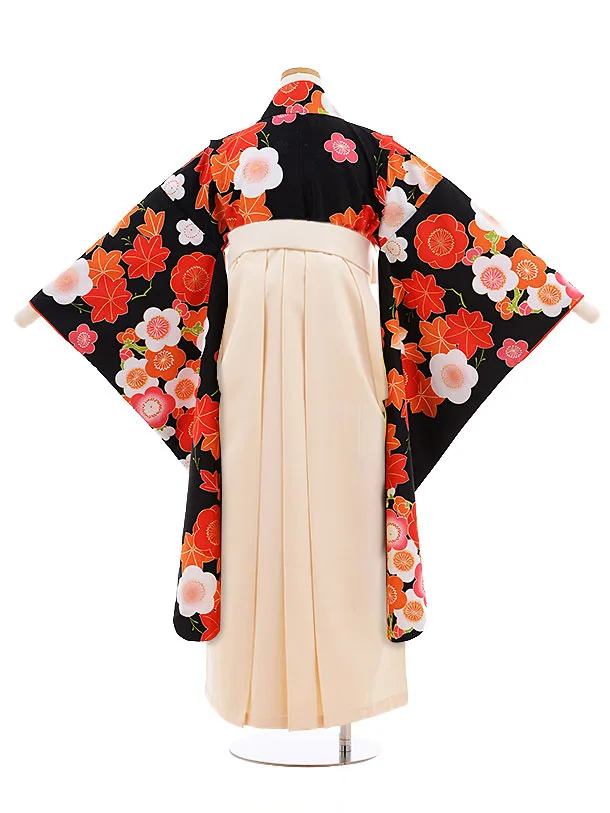 小学校卒業式袴レンタル(女の子)9829 小町kids 黒地梅×アイボリー袴