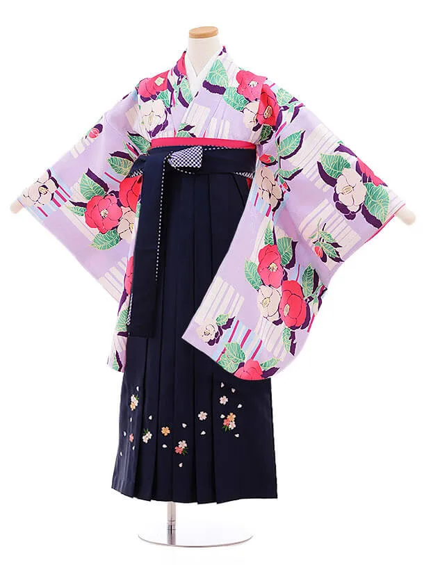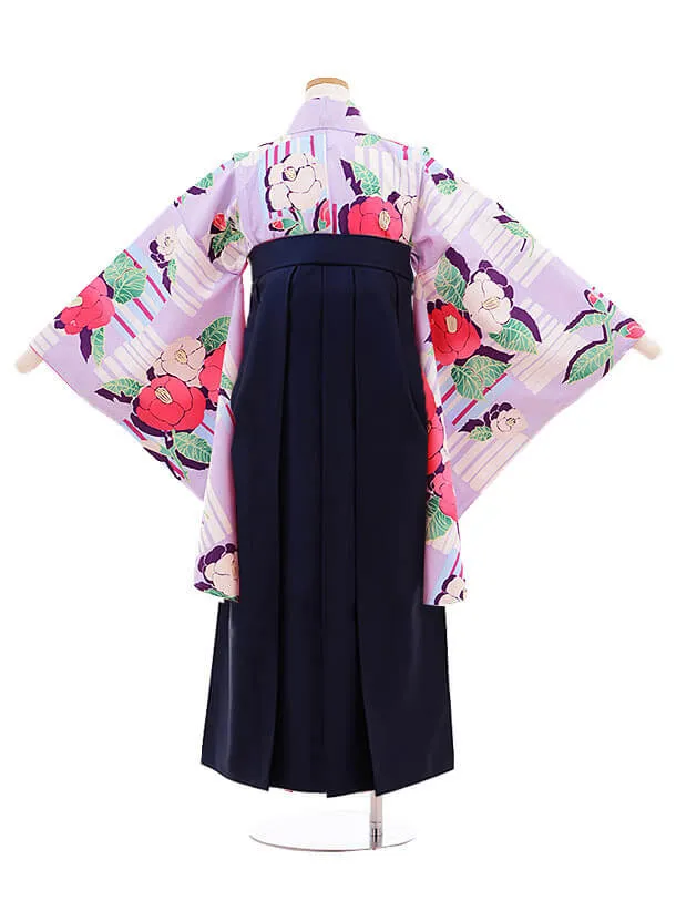 小学校卒業式袴レンタル(女の子)9832 パープル椿×紺袴