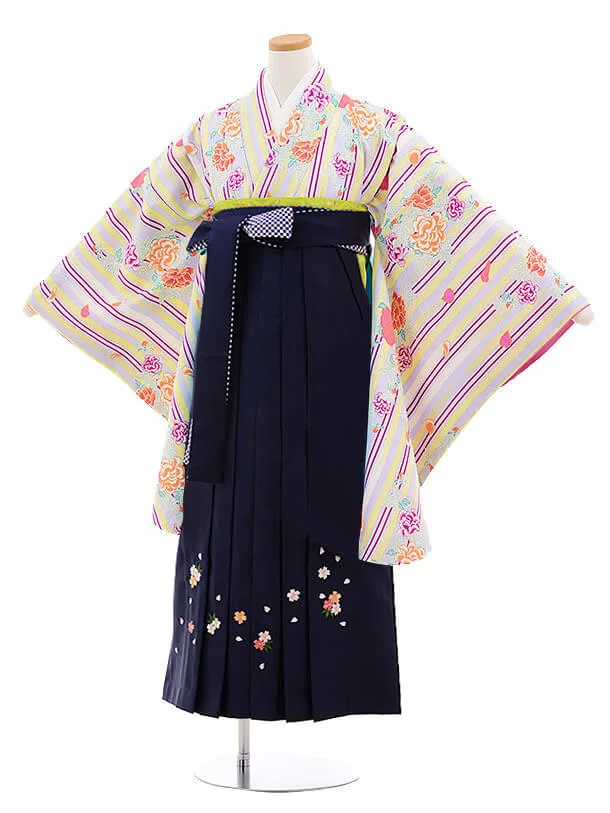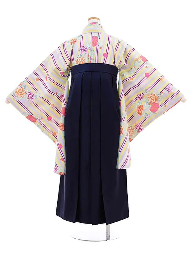 小学校卒業式袴レンタル(女の子)9835すみれストライプ×紺袴