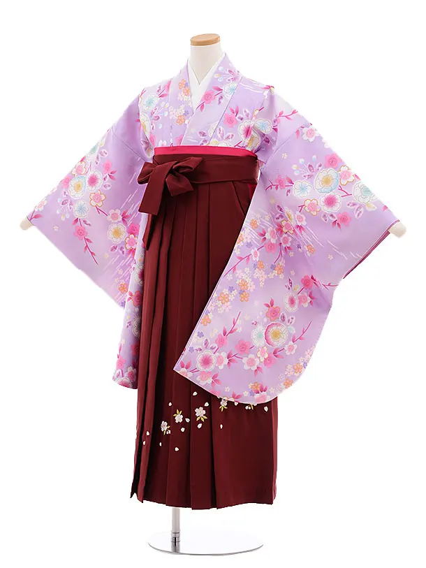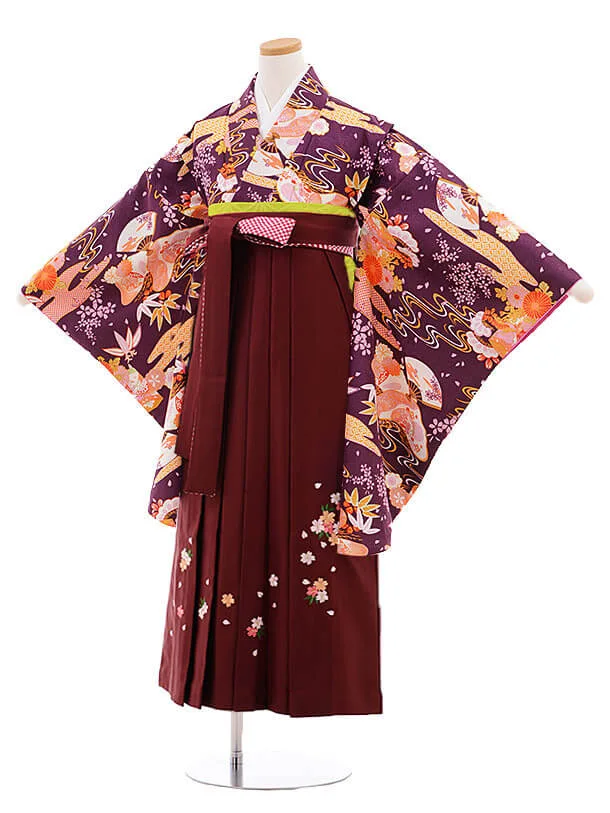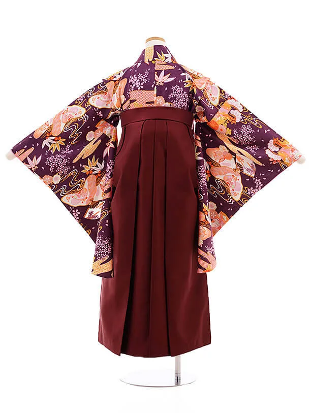 小学校卒業式袴レンタル(女の子)9839紫×エンジ袴