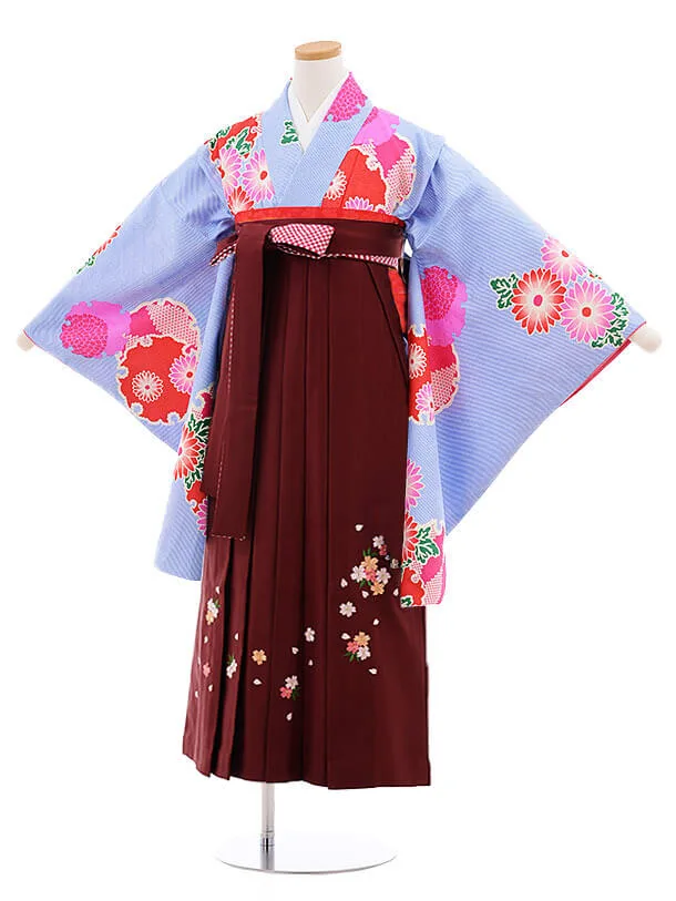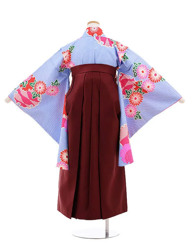 小学校卒業式袴レンタル(女の子)9840ブルー雪輪×エンジ袴