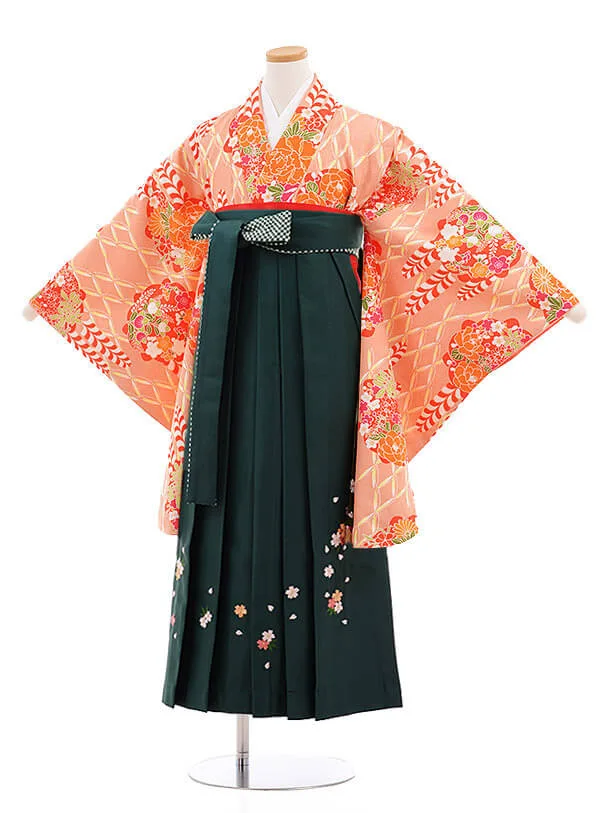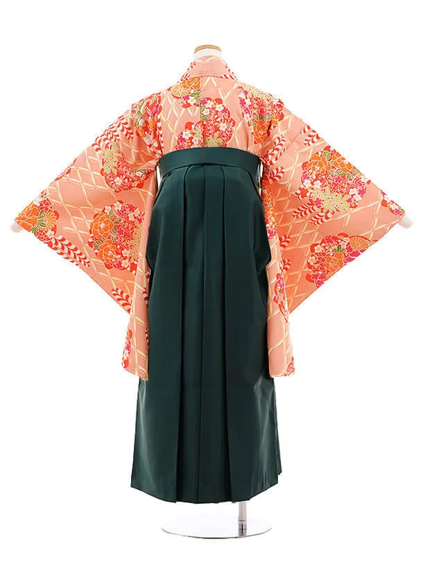 小学校卒業式袴レンタル(女の子)9857サーモンピンク×グリーン袴