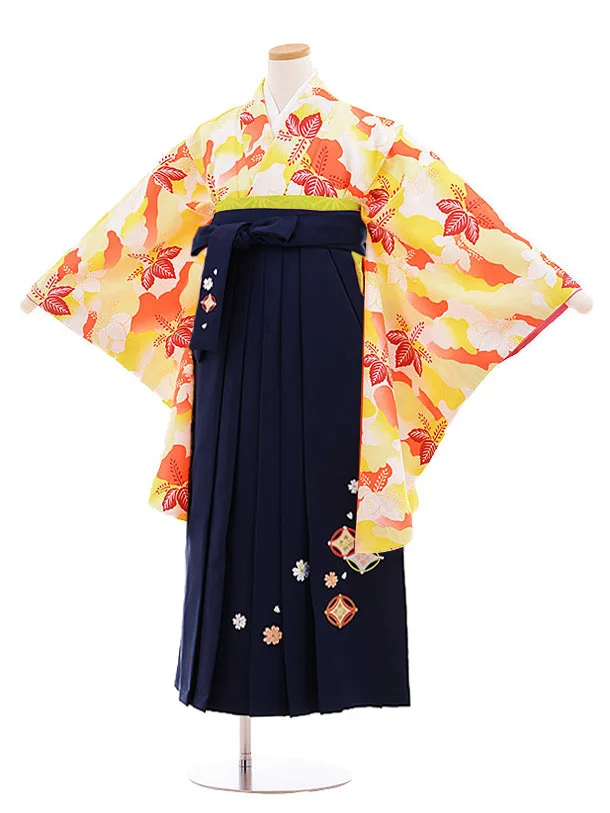 小学校卒業式袴レンタル(女の子)9861 黄色桐×紺袴