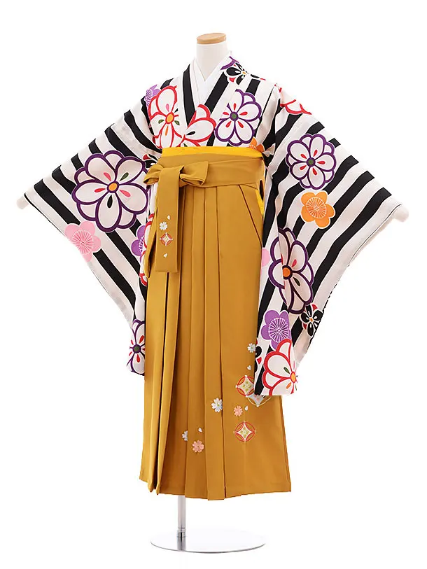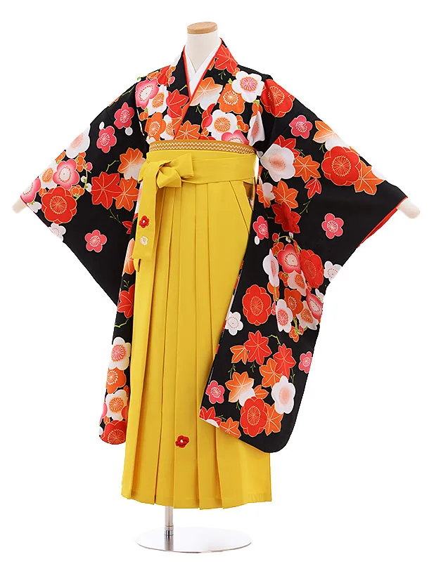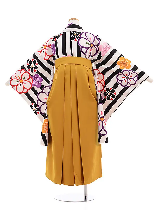 小学校卒業式袴レンタル(女の子)9866 黒ストライプ梅×からし袴