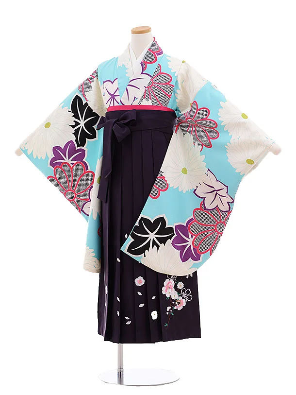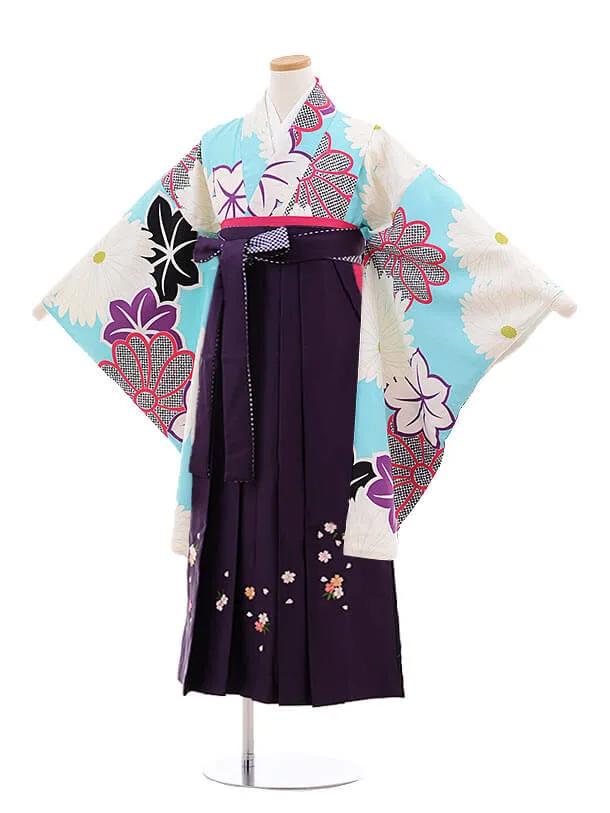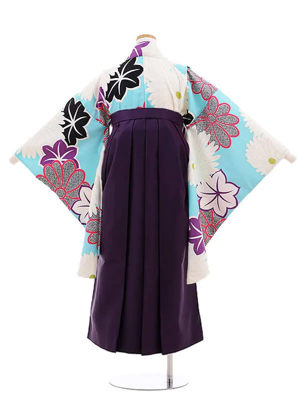 小学校卒業式袴レンタル(女の子)9873水色菊×パープル袴