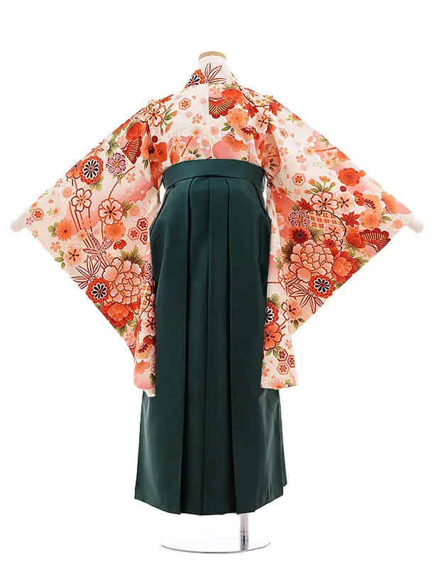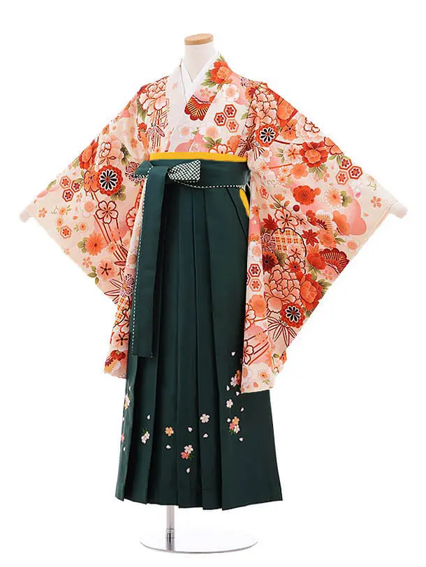 小学校卒業式袴レンタル(女の子)9882クリーム色松竹梅ぼたん×グリーン袴