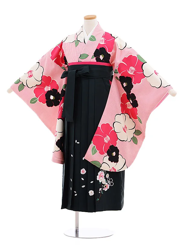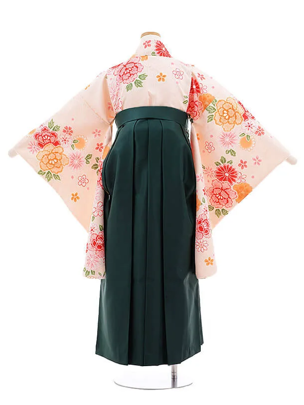 小学校卒業式袴レンタル(女の子)9885ライトピンク花×グリーン袴