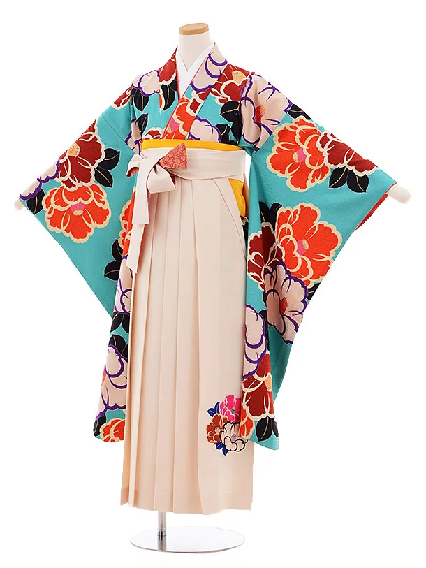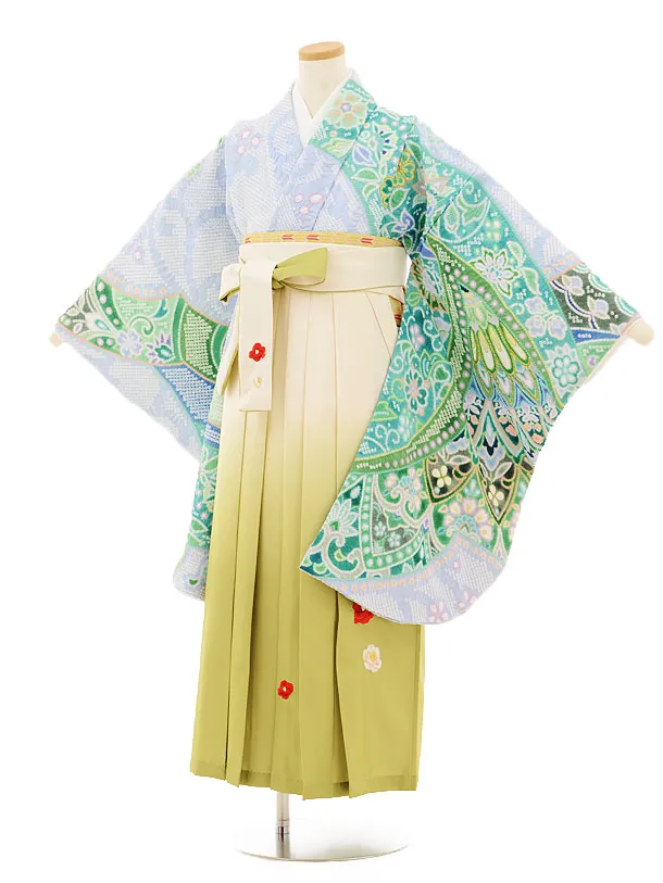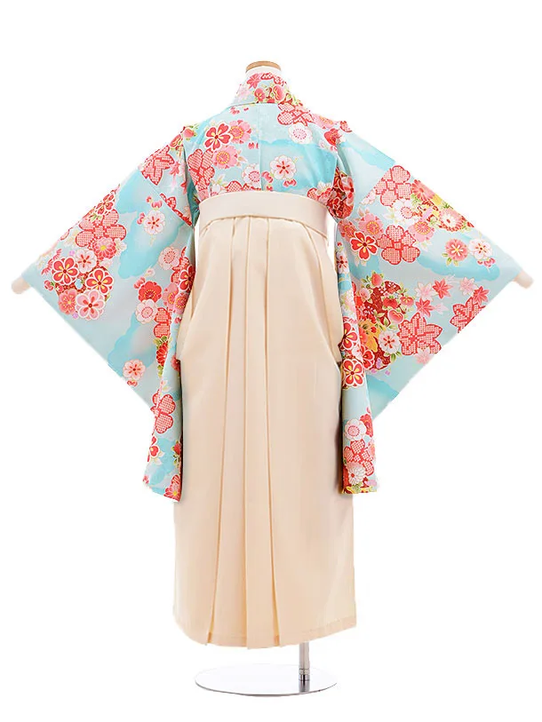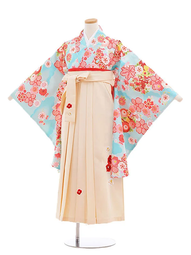小学校卒業式袴レンタル(女の子)9886 水色雲取り花×アイボリー袴