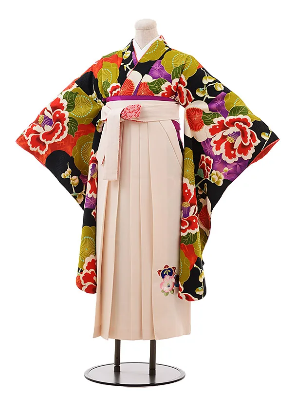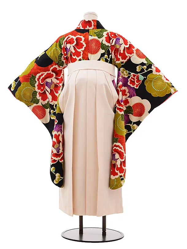 小学生 卒業式 袴 女児 9910 九重 黒地 梅椿×クリーム袴