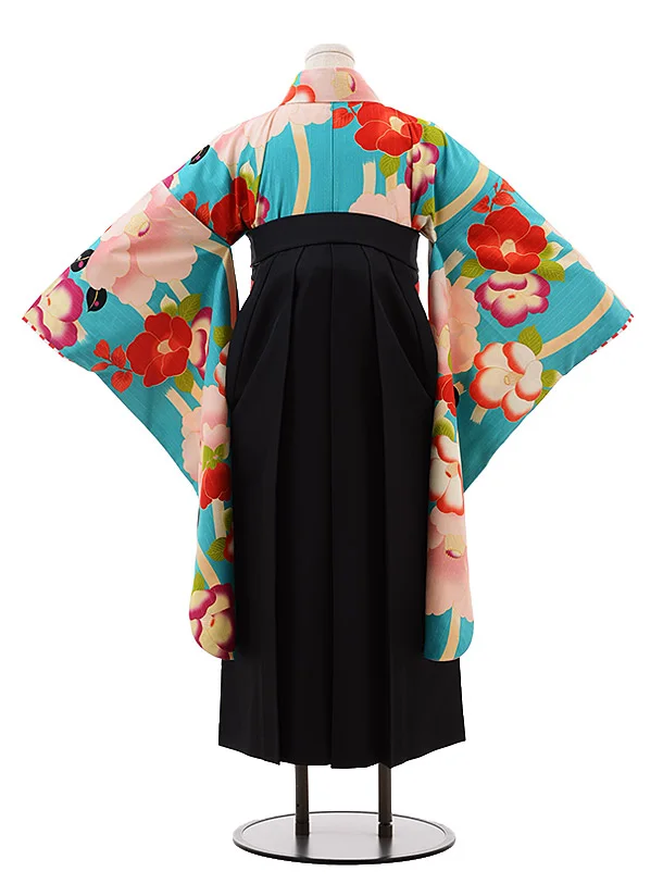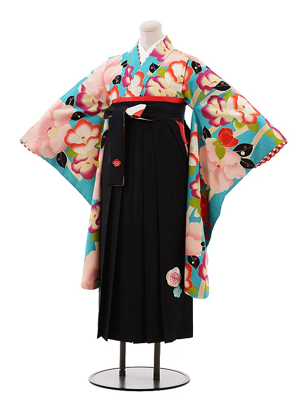 小学生 卒業式 袴 女児 9917 紅一点 ターコイズ 椿×黒袴