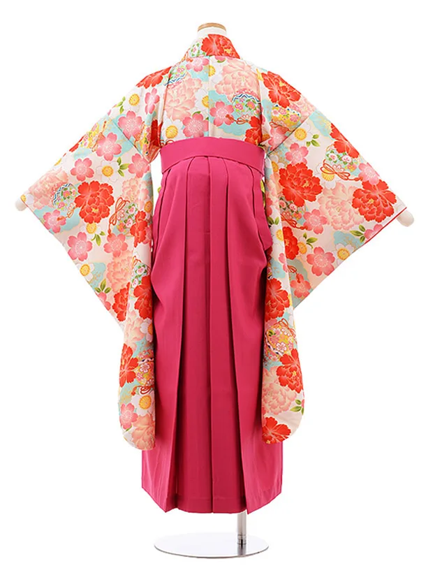 小学生 卒業式 袴 女児 9940 小町kids クリーム地 ぼたん×ピンク袴