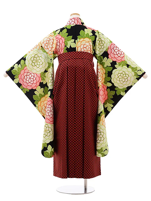 小学生 卒業式 袴 女児 9945 紅一点 黒地 花×赤チェック袴