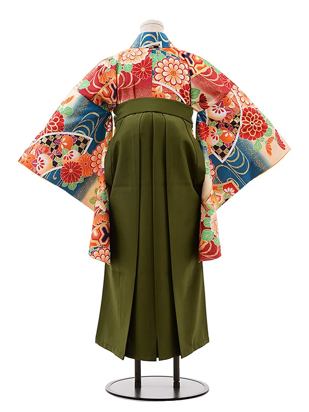 小学生 卒業式 袴 女児 9952 ひいな クリーム 赤 ぼかし 花×抹茶袴