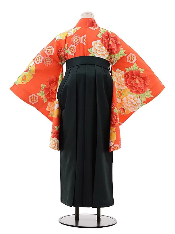 小学生 卒業式 袴 女児 9957 ひいな オレンジ地 ぼたん×グリーン袴