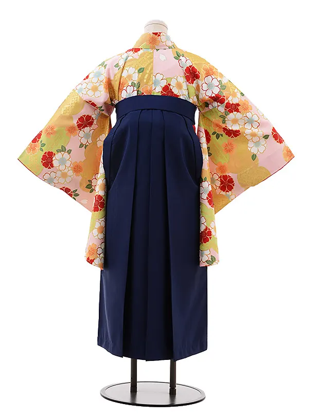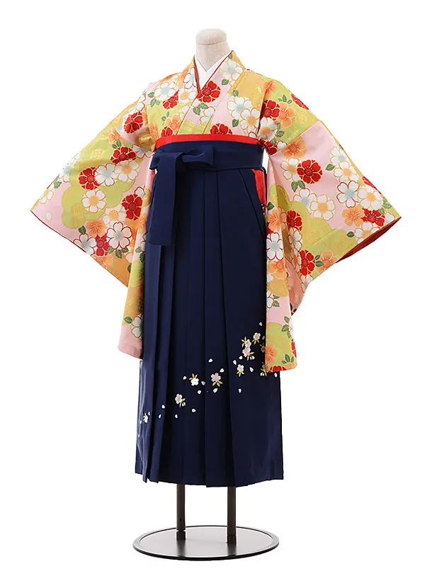 小学生 卒業式 袴 女児 9962 ひいな ピンク地 桜×紺桜袴