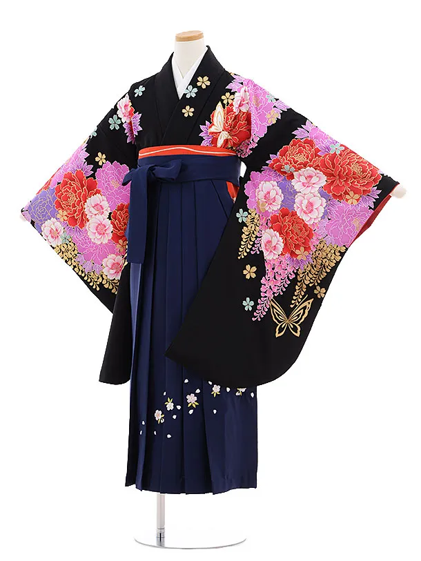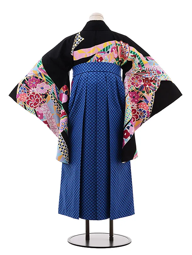 小学生 卒業式 袴 女の子 9978 黒地 のしめ 椿×ブルーチェック袴