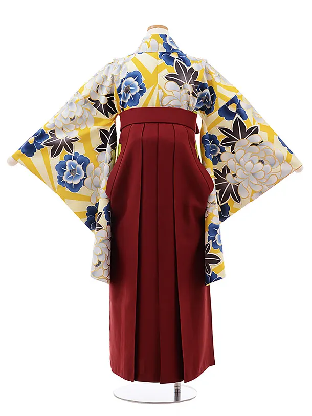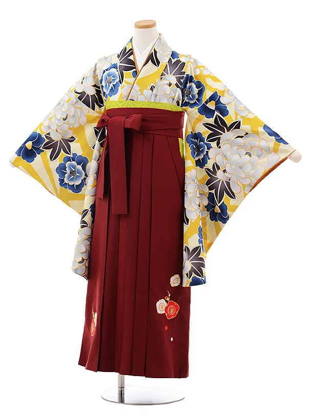 小学生 卒業式 袴 女の子 9993 からし色 ぼたん×エンジ袴