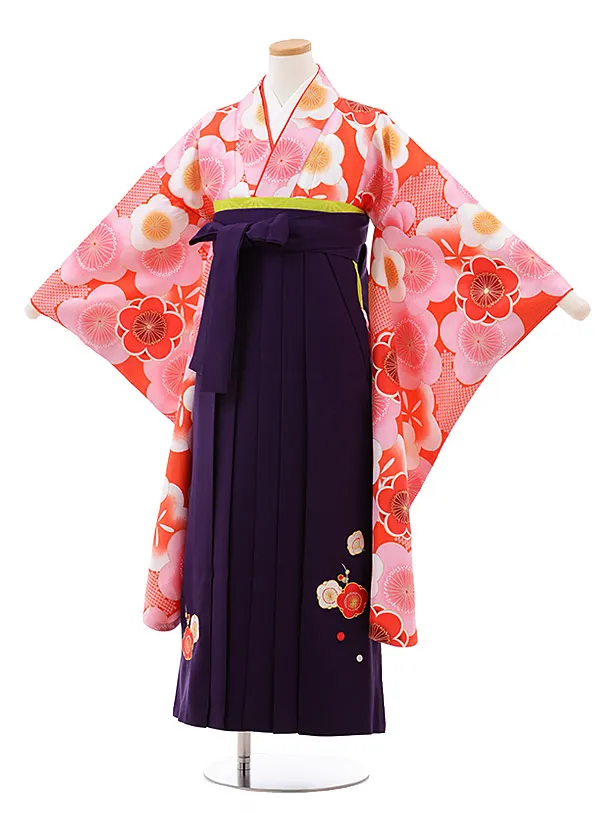 小学生 卒業式 袴 女の子 9997 オレンジ地 梅×パープル袴