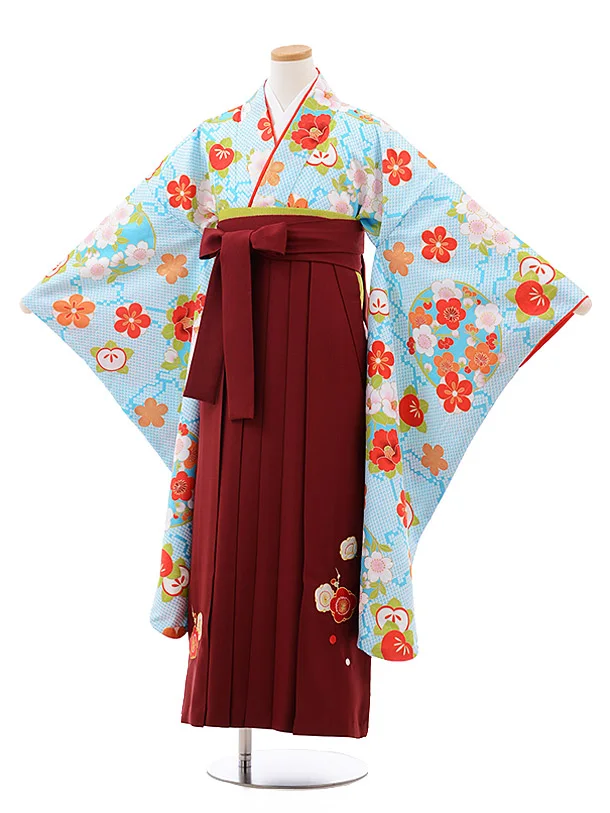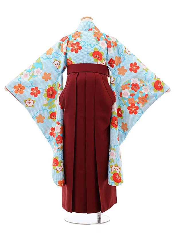 小学生 卒業式 袴 女の子 9999 水色地 梅 桜×エンジ袴