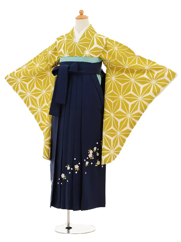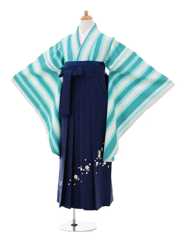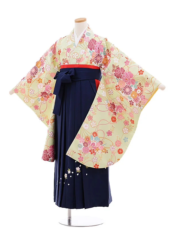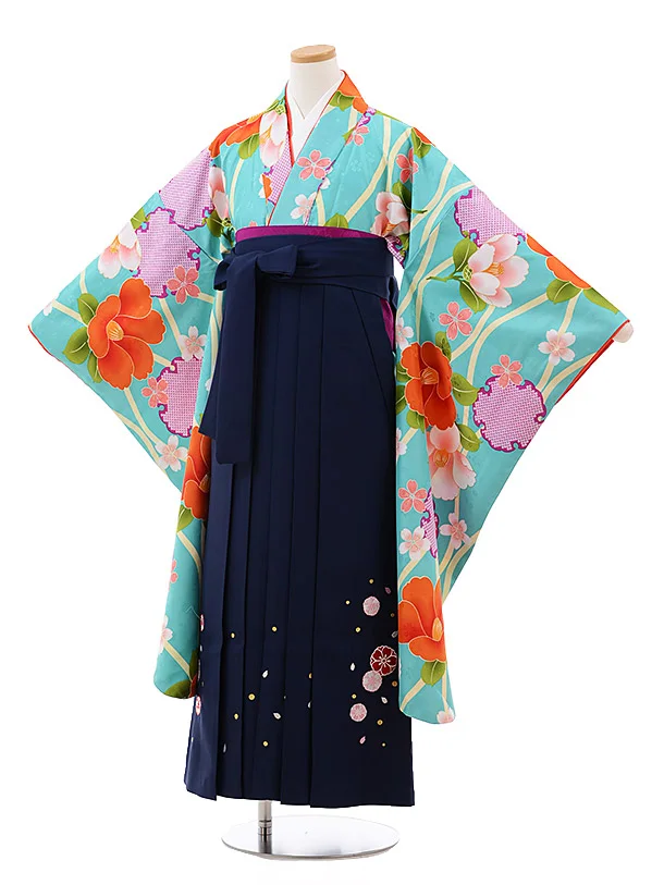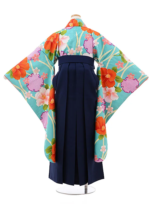小学生卒業袴(女児)Z005 小町kids ペパーミントグリーン 椿×紺袴