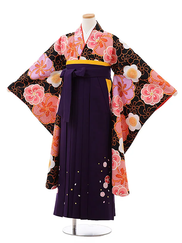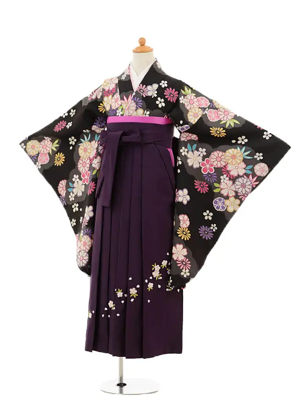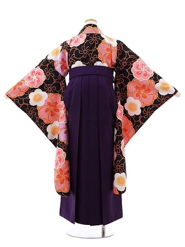 小学生 卒業袴 女児 Z015 黒地 梅×パープル袴