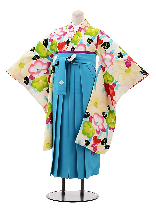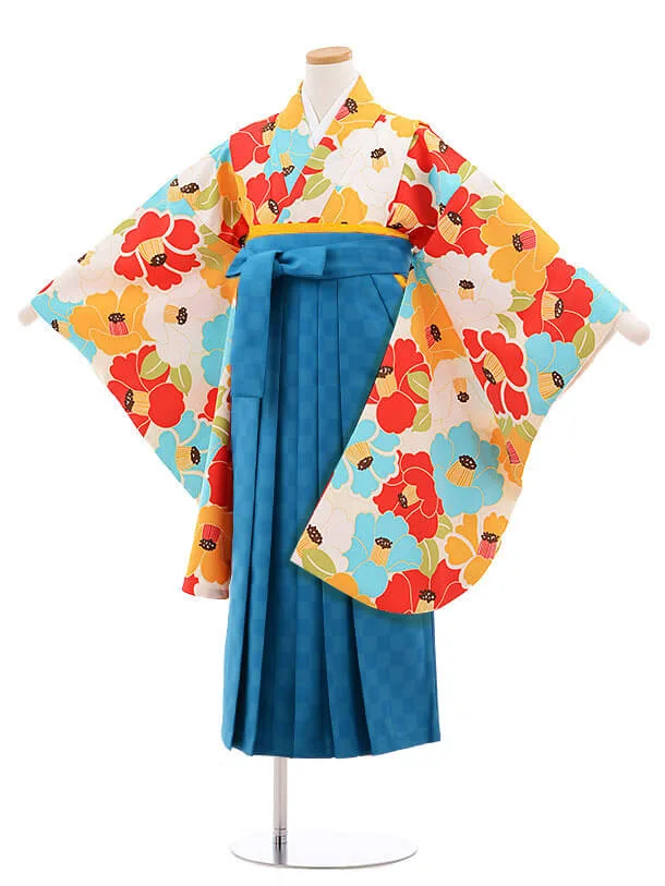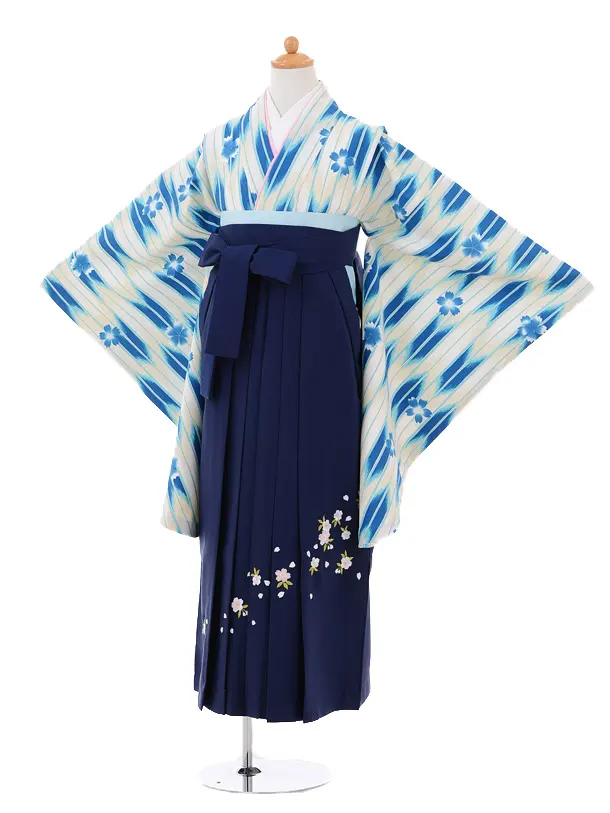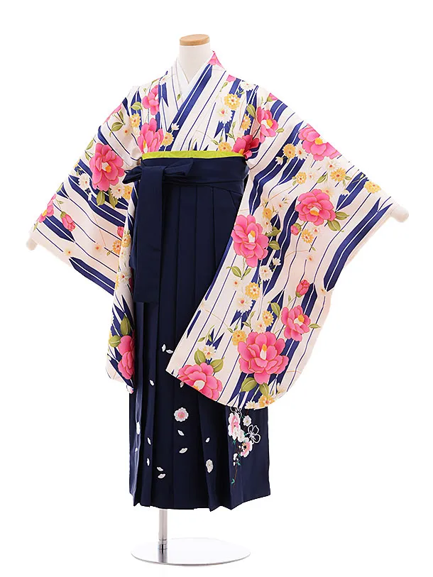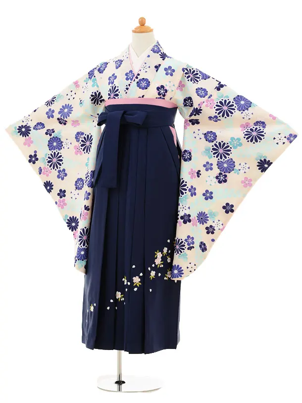 小学生 卒業袴 女児 Z016 白地 小花×紺袴