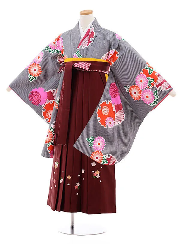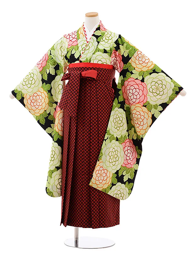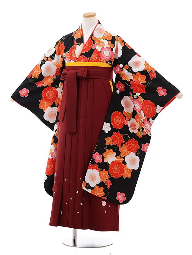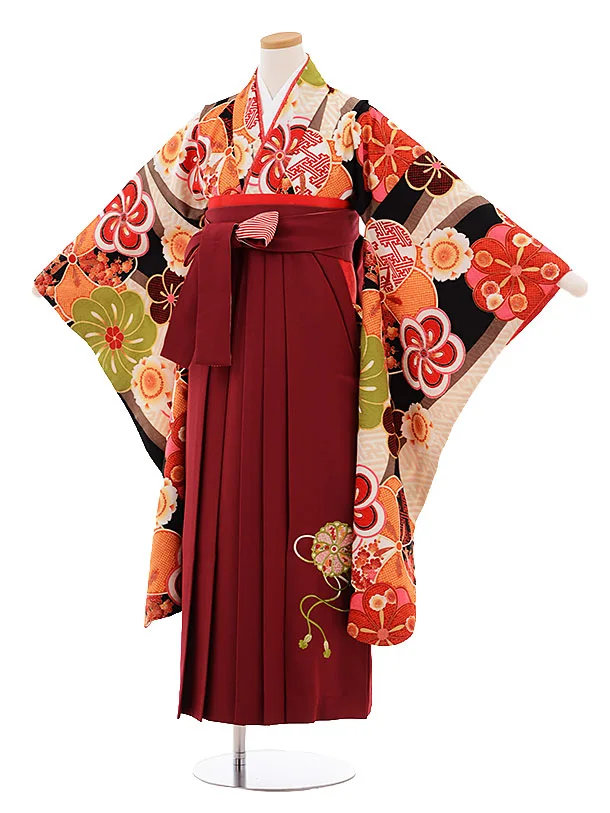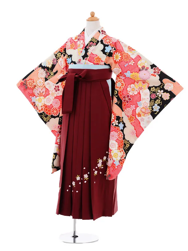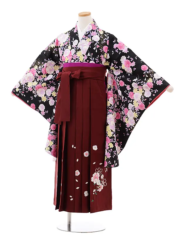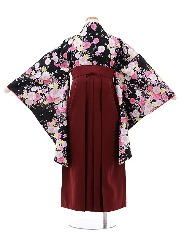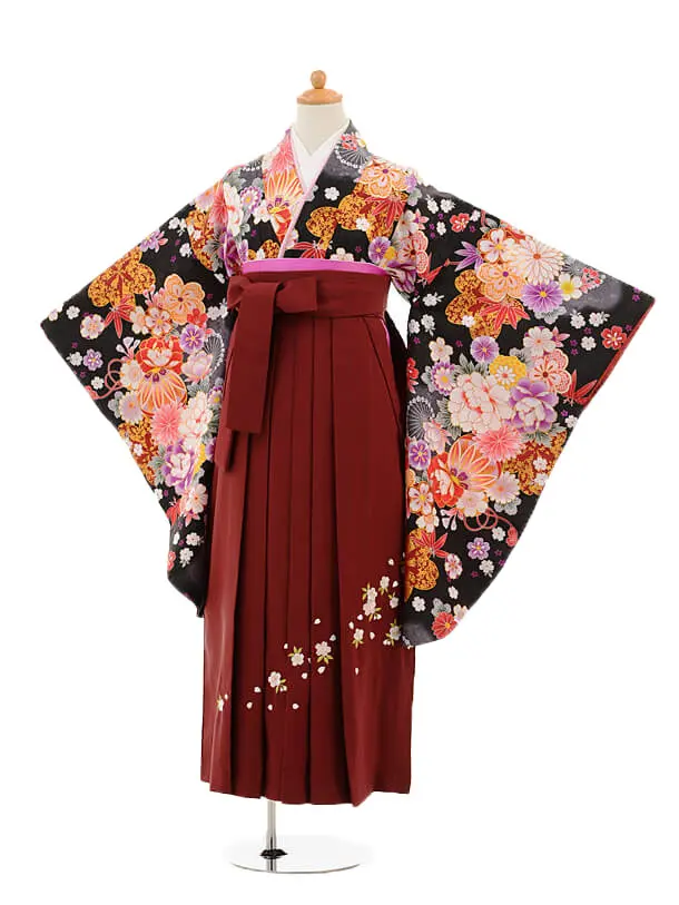 小学生 卒業袴 女児 Z018 黒地 桜×エンジ袴