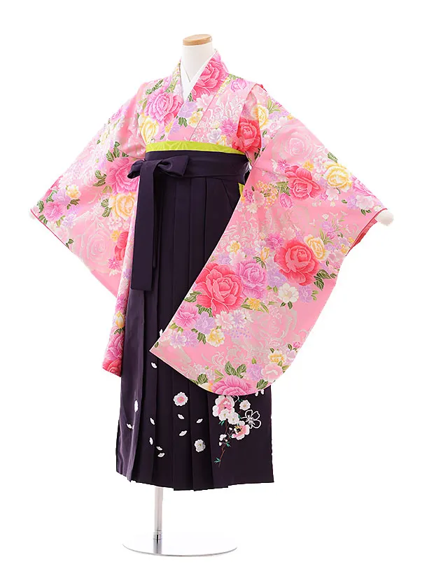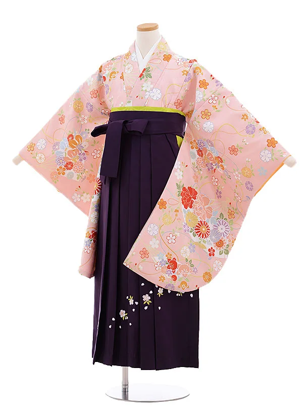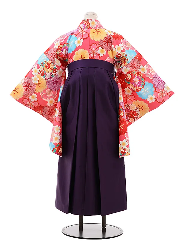 小学生卒業式袴レンタル(女の子) Z038ピンク地桜×パープル袴