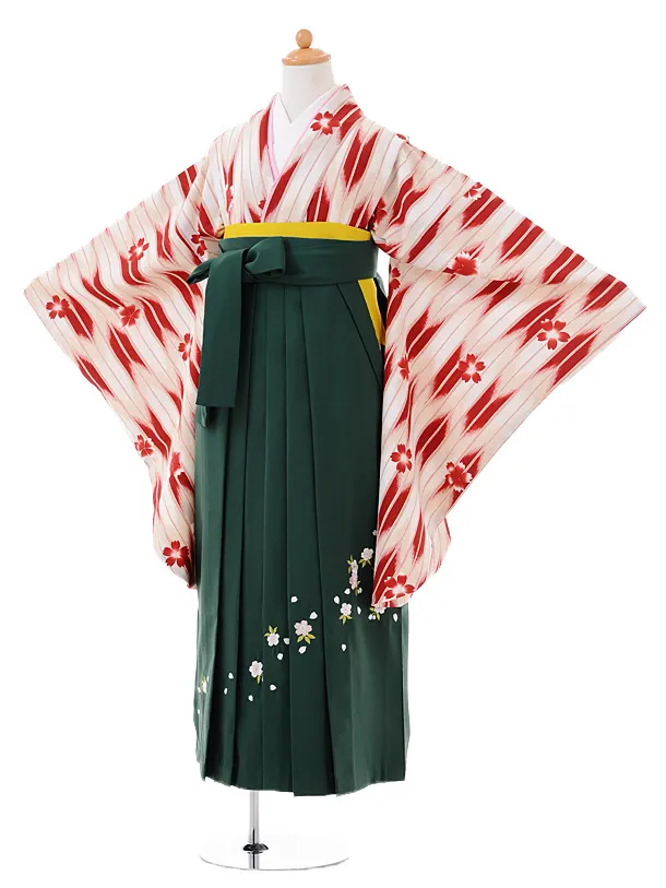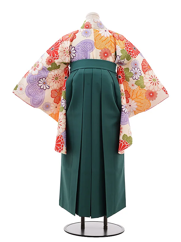小学生卒業式袴レンタル(女の子) Z039クリーム地菊×グリーン袴